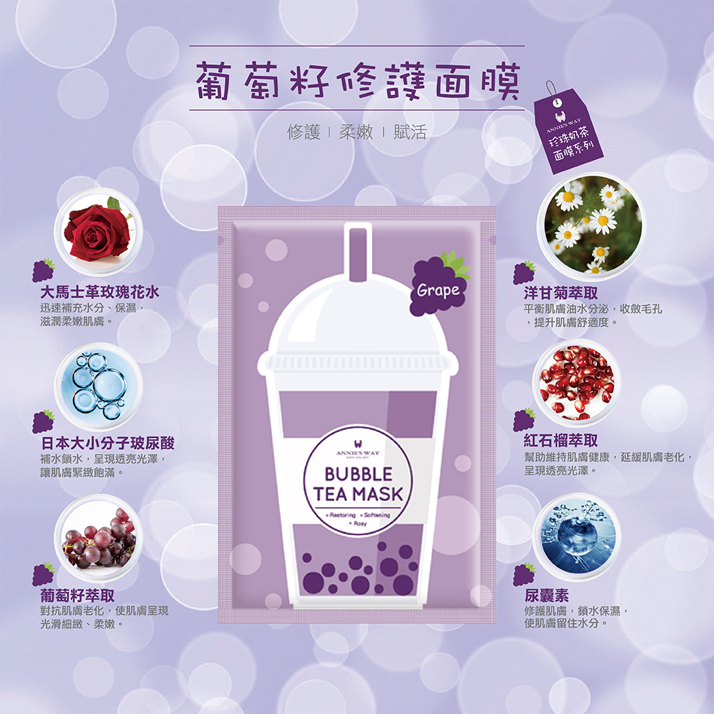 葡萄籽修護面膜 Grape Bubble Tea Invisible Silk Mask