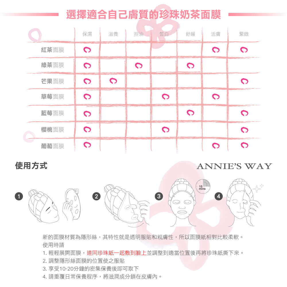 ‧ 溫馨提醒:第一次使用建議使用5分鐘做肌膚測試,再依照個人肌膚狀況調整使用時間。請不要超過15分鐘。