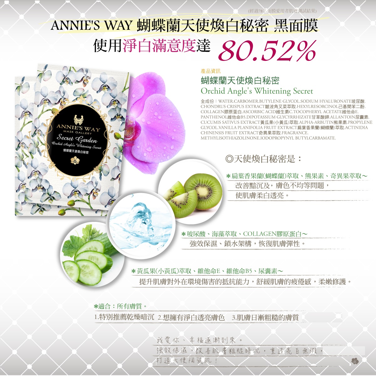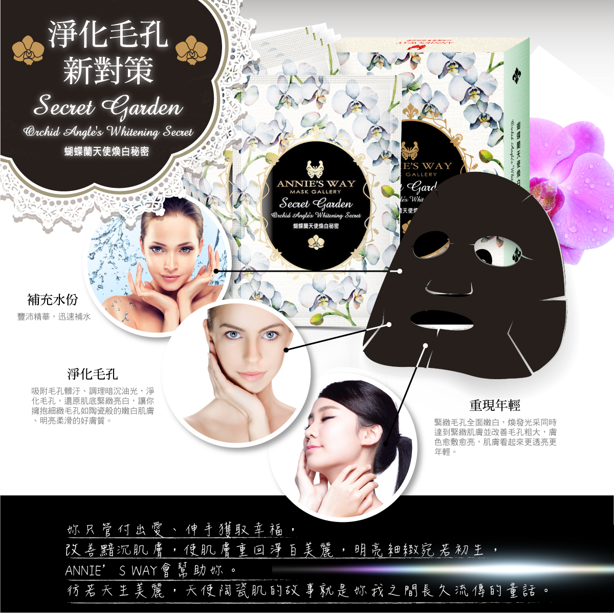 內含:祕密花園系列 蝴蝶蘭天使煥白秘密 24ml/1片 黑面膜