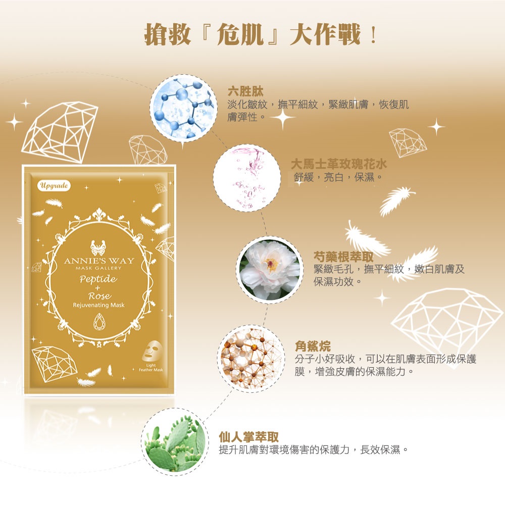 胜肽薔薇賦活羽絲面膜Peptide + Rose Rejuvenating Mask